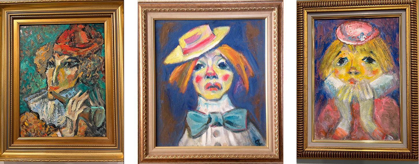 I have many of Alexander Sapozhnikov’s works at home, but I’m especially drawn to his Circus world: clowns who are technically performers, but emotionally… they’re something else. The other remarkable set I call Mystery Ladies: women in hats and flowers, with faces that refuse to become simple. They don’t “pose.” They withhold.